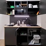 Naast koffie- en theevoorzieningen, zijn de zelfvoorzienende faciliteiten in de keuken onder andere een waterkoker, een koelkast en een broodrooster.